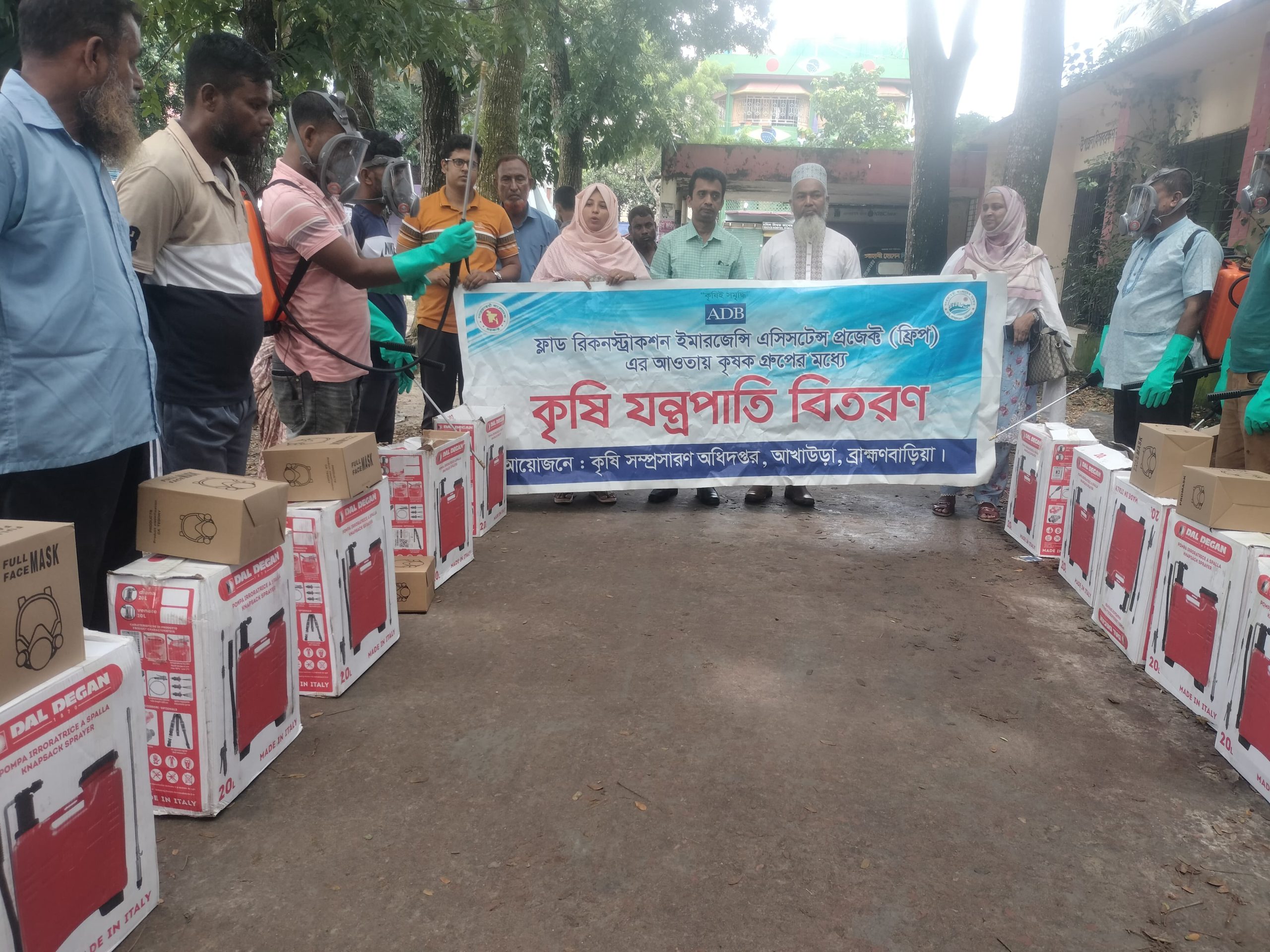 আখাউড়ায় ৪৫ কৃষকের মাঝে কীটনাশক স্প্রে মেশিন বিতরণ।