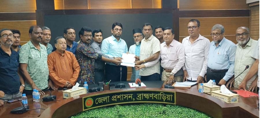 ব্রাহ্মণবাড়িয়ায় সাংবাদিকদের বিরুদ্ধে হয়রানিমূলক মামলা ও অপপ্রচারের প্রতিবাদে স্বরাষ্ট্র উপদেষ্টার কাছে স্মারলিপি