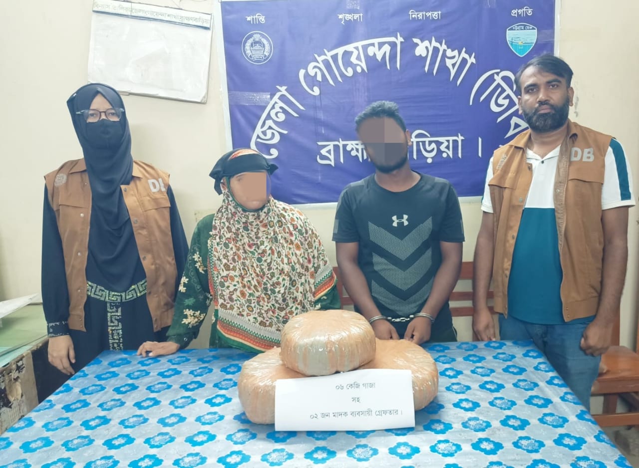ব্রাহ্মণবাড়িয়ায় ডিবি পুলিশের অভিযানে ৬ কেজি গাঁজাসহ দুই মাদক কারবারি গ্রেফতার