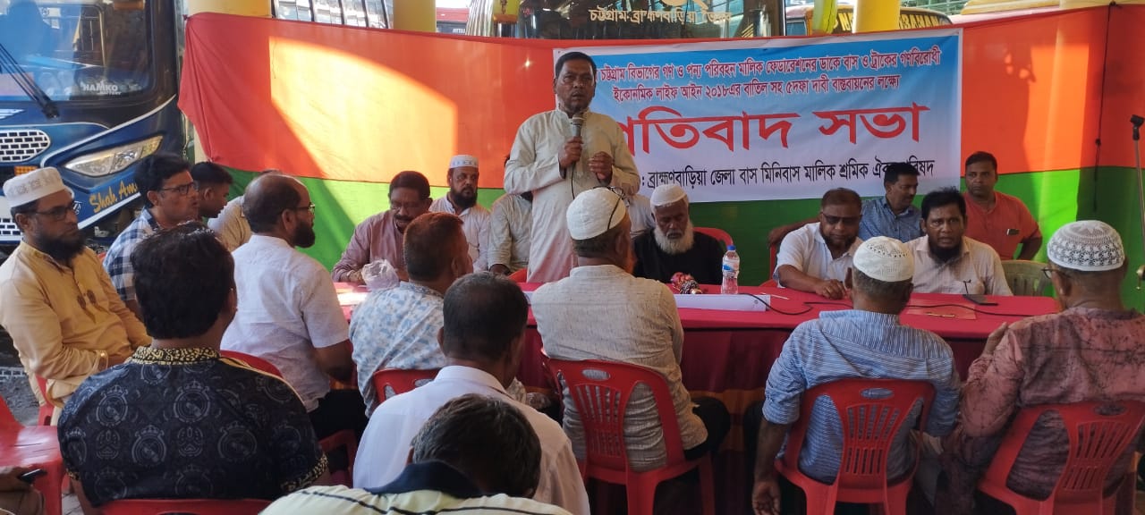 পরিবহনের ইকোনমিক লাইফ আইন ২০১৮ এর বাতিলসহ ৫ দফা দাবী বাস্তবায়নের লক্ষ্যে ব্রাহ্মণবাড়িয়ায় প্রতিবাদ সভা অনুষ্ঠিত হয়েছে। বৃহত্তর চট্টগ্রাম বিভাগের