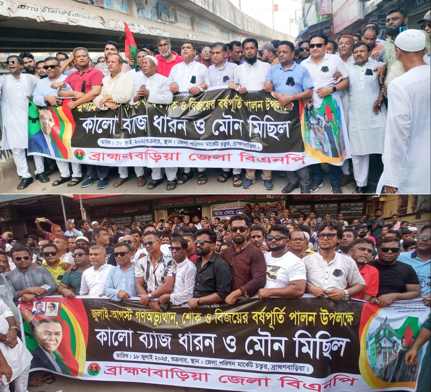 জুলাই-আগস্ট মাসের গণঅভ্যুত্থান, শোক ও বিজয়ের চেতনাকে ধারণ করে ব্রাহ্মণবাড়িয়া জেলা বিএনপি আয়োজিত এক কালো ব্যাজ ধারণ ও মৌন মিছিলে