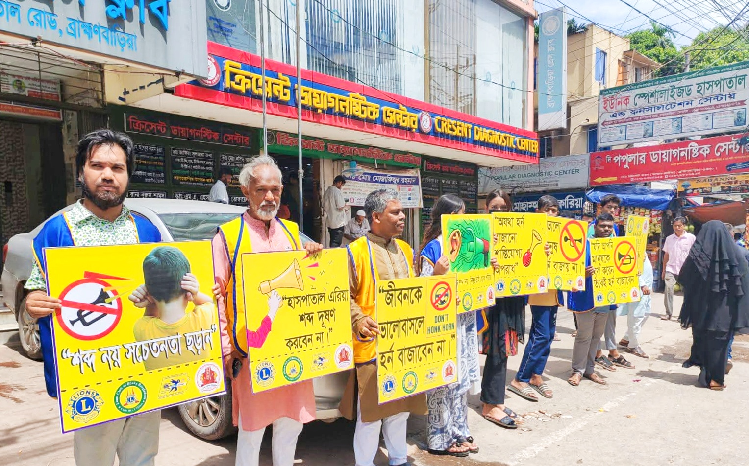 শব্দ দূষণের ভয়াবহতা সম্পর্কে জনসচেতনতা বৃদ্ধির লক্ষ্যে ব্রাহ্মণবাড়িয়া শহরের কুমার শীলের মোড় ও প্রেসক্লাবের সামনে অবস্থান কর্মসূচি পালন করেছে লায়ন্স