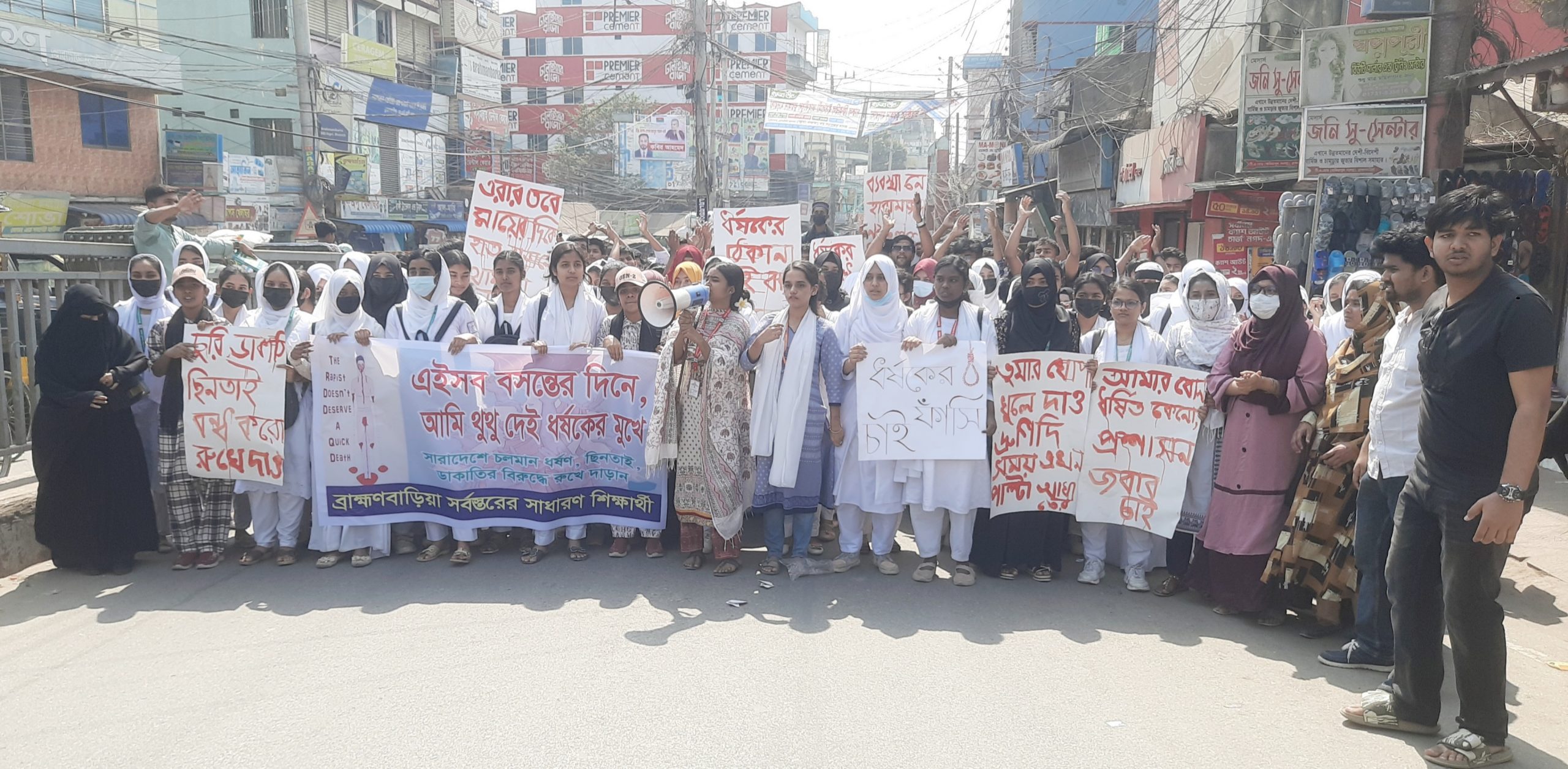 ধর্ষকদের সর্বোচ্চ শাস্তি মৃত্যুদন্ড নিশ্চিত করার দাবী ব্রাহ্মণবাড়িয়ায় বিক্ষোভ মিছিল ও মানববন্ধন