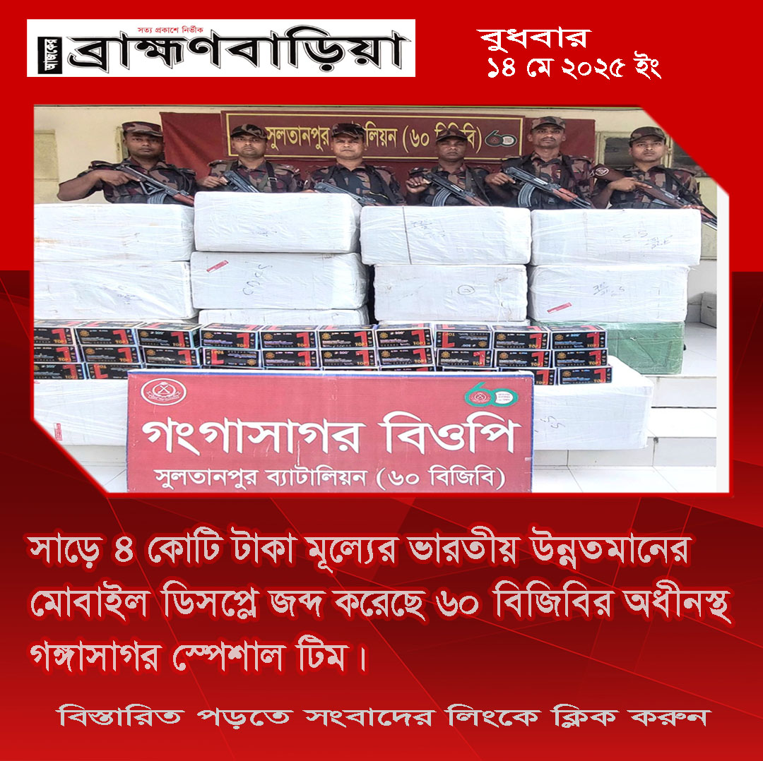 সাড়ে ৪ কোটি টাকা মূল্যের ভারতীয় মোবাইল ডিসপ্লে জব্দ করেছে ৬০ বিজিবি।