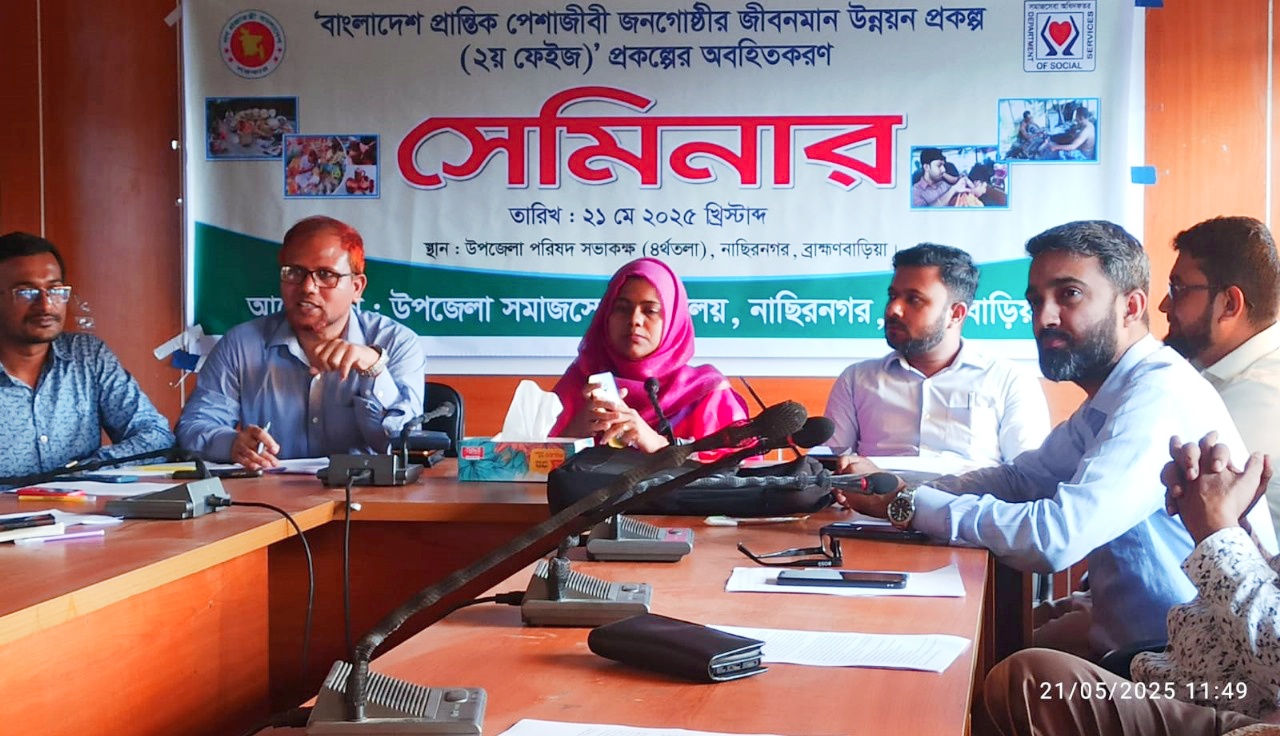 নাসিরনগরে প্রান্তিক পেশাজীবী জনগোষ্ঠীর জীবনমান উন্নয়ন (দ্বিতীয় পর্যায়) প্রকল্পের অবহিতকরণ সেমিনার অনুষ্ঠিত হয়েছে।