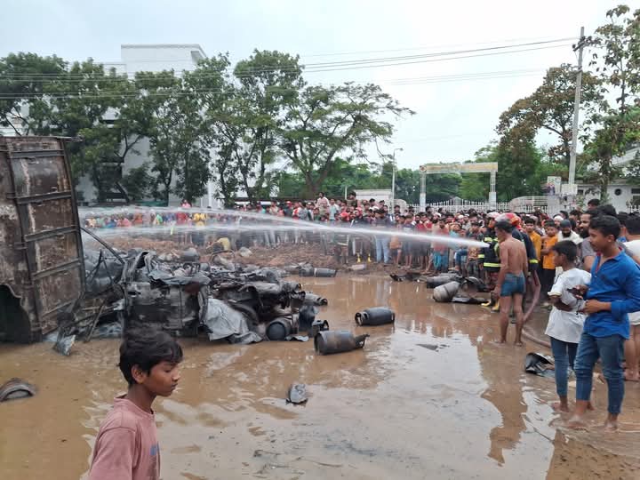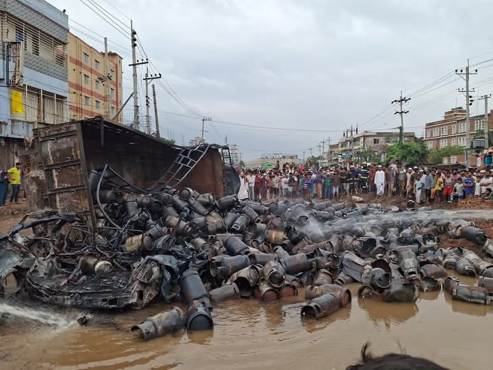 ব্রাহ্মণবাড়িয়া বেহাল সড়কে সিলিন্ডার বোঝাই ট্রাক উল্টে একের পর এক বিস্ফোরণ